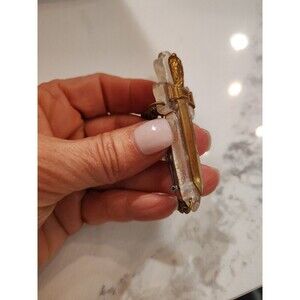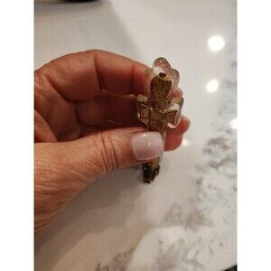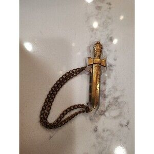 Vintage Intricate Bakelite Gold toned Sword Pin Brooch with Dangle link chain