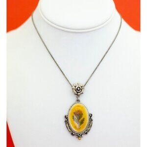 Vintage Intricate Floral Pendant Choker Necklace, 14 1/2 Inches - O28