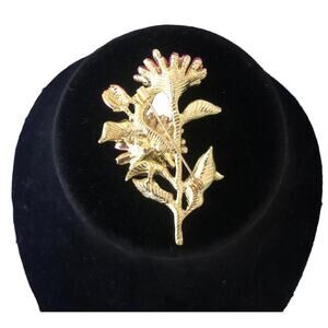 Add a touch of elegance and romance to any outfit with our Vintage Intricate Floral Pink Green And Gold Brooch.