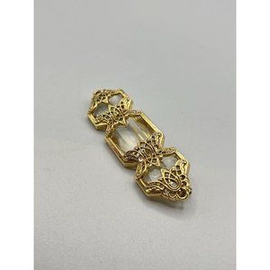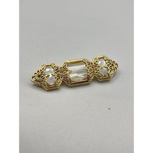 Vintage Intricate Gold Filigree Bar Pin Clear Acrylic Stones Classic Jewelry