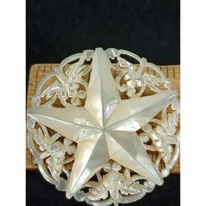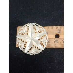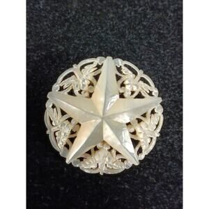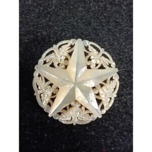 Vintage Intricate Hand Carved Mother of Pearl Star Pin Brooch Beautiful Detailed