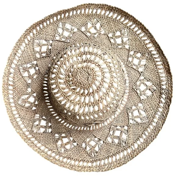 Vintage Intricately Woven Straw Hat Handcrafted