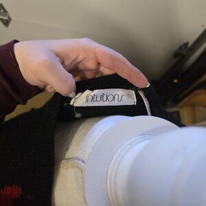 Vintage Intuitions Black & Red Knit Cardigan - Bold Floral Design