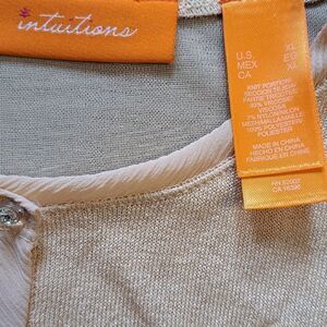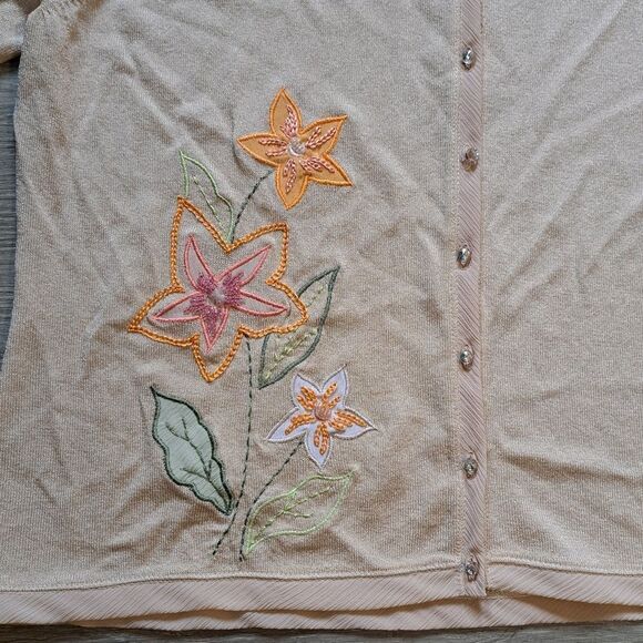 Vintage Intuitions Y2K Button Down Floral Stitch Lawn Party Cardigan XL Tan NWT