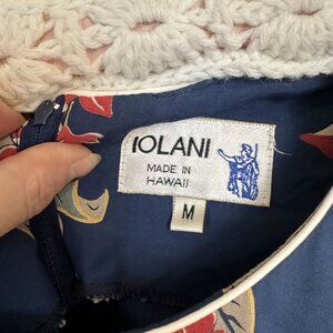 Vintage Iolani Hawaiian Womens Maxi Dress Medium Blue Floral Earth Tone Rayon