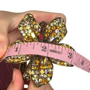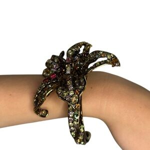 Vintage Iradj Moini crystal Dimensional Lily Flower Cuff Bracelet rhinestone