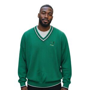 Vintage Ireland Sweater Green Shamrock V-Neck Pullover Tennis Preppy Large Men