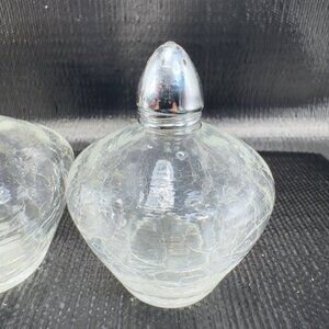 Vintage Irice Clear Crackled Glass Salt And Pepper Shaker Set 2 Metal Lids VTG