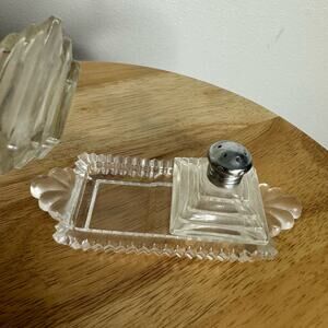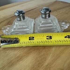 Vintage Irice Pyramid Mini Pepper Salt Set with Tray Glass Art Deco