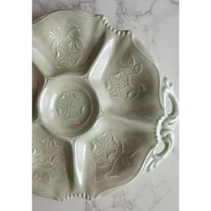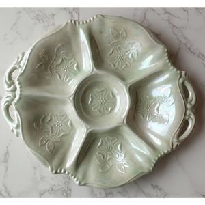 Vintage Iridescent Divided Serving or Crudite Dish Raised Floral Pattern 473