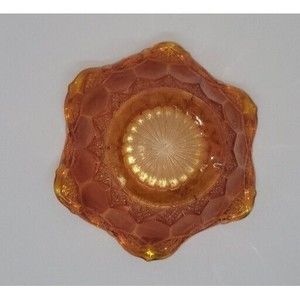 This vintage bon bon dish is a charming addition to any collection. Its iridescent marigold color and diamond pattern make it a unique piece that is sure to catch the eye. Measuring 5 inches in diameter, this dish is perfect for serving small treats or as a decorative accent.