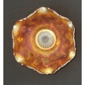 Vintage Iridescent Marigold CARNIVAL Bon Bon Dish 5 " Dia. Diamonds