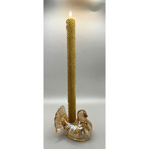 This vintage carnival glass turkey candle holder is a unique addition to any collection. Crafted from iridescent orange glass, it features a 3D effect that creates a stunning display when lit with a mini candle. Measuring 3.25 inches in length, 3 inches in width, and 2.5 inches in height, it's suitable for any room and handmade for an original touch. The holder is in excellent condition and ready to use, with no additional parts required. Its production style is carnival glass and it's an original piece. Its theme is animals, specifically turkeys, and it's perfect for anyone who loves antique and vintage items.