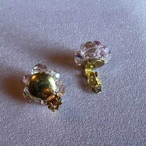 Vintage Iridescent Pink Flower Hand Beaded Clip On Earrings Elegant Romantic