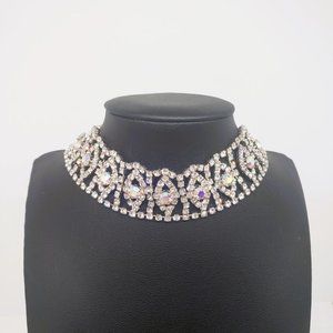 Vintage Iridescent Silver Cubic Zirconia Choker