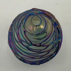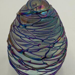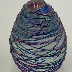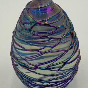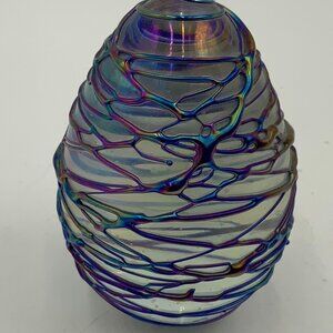 Vintage Iridescent Threaded Egg Paperweight 3 1/2"