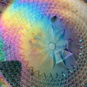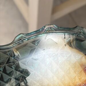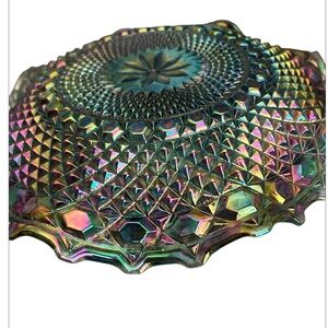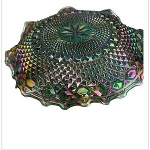 Vintage Iridescent blue Carnival glass ruffled edge hostess plate