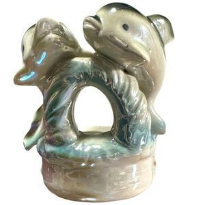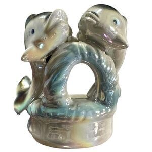 Vtg Iridescent Lustreware Ceramic Pink Dolphins on Trinket Bowl 1960s beautiful