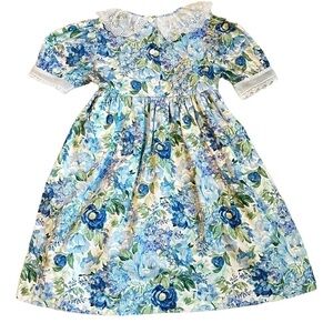Vintage Iris & Ivy Party Dress Cottagecore Floral Print Sheer collar & Bows 6X