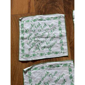 Vintage Irish Linen Cocktail Napkins With Green Wine & Whiskey Quotes Set Of 7