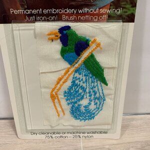 Vintage Iron On Net Vanishes Permanent Embroidery Bird Applique Patch NOS