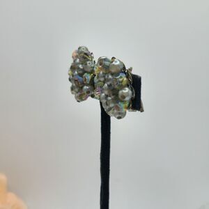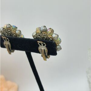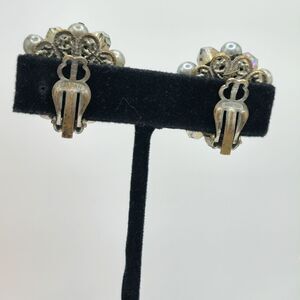 Beautiful Silver tone circle earrings with beautiful crystal irradescent sparkly beads and simulated faux pearls