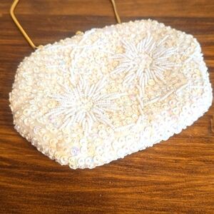 Vintage Irredescent White Sequin Clutch Wristlet Stunning!! Marshall Fields & Co