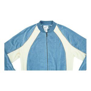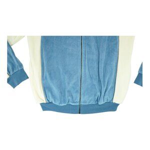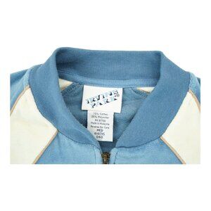 This vintage Irvine Park full zip sweater is a must-have for any man's fall and winter wardrobe. The blue and white color combo and long sleeve design will keep you looking stylish and feeling warm all season long. Made with 75% cotton and 25% polyester, this sweater also features a full zip and is available in men's size medium.