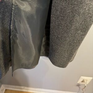 This is a vintage Isaac Hazan gray 100% wool skirt. It is calf length and fully lined with a side button closure. This is classic and preppy. It is pre-owned in excellent condition with no observable flaws.