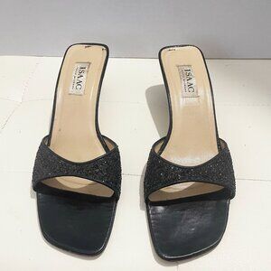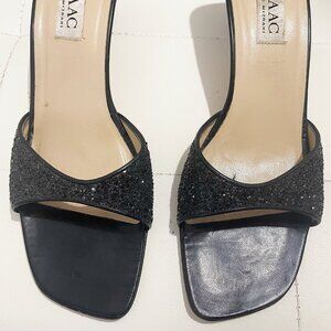Vintage Isaac Mizrahi Black Open-Toe Mules Heels with Glitter Detail | Size 10B