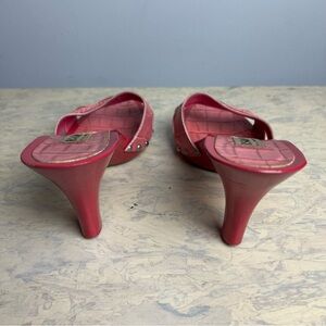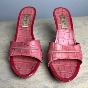 Vintage Isaac Mizrahi Kitten Heels Pink Crocodile Leather Sandals Sz 8 B Y2K