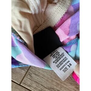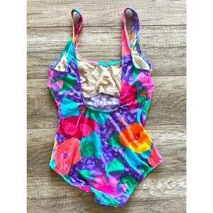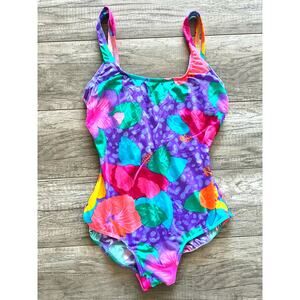 Vintage Island Native Swimsuit Leotard Hawaiian Floral Neon 14 80s 90s