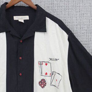 Vintage Island Republic Silk Shirt 2XL Mens Beige All In Poker Graphic Art Rare