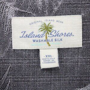 Vintage Island Shores Hawaiian Silk Shirt Mens 2XL Gray Floral Print Button Down