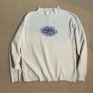 Vintage Isle of Cotton Floral Embroidered Sweater in Cream Women’s Large