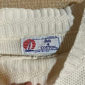 Beautiful vintage Isle of Cotton sweater in cream color with floral embroidery