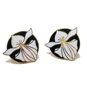 Celebrate the artistry of Scottish craftsmanship with this beautiful pair of vintage Isle of Skye cloisonné enamel earrings. Handcrafted on the Isle of Skye, these earrings feature a striking black and white lily design outlined in shimmering gold cloisonné, all set on a circular gold-plated base.
