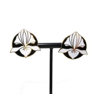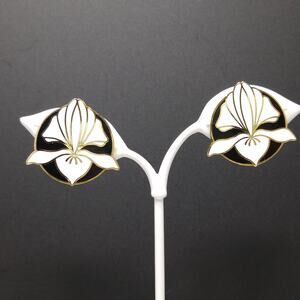 Vintage Isle of Skye Cloisonné Enamel Earrings, Black & White Lily, Gold Plated