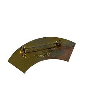 Vintage Isle of Skye Enamel Fan Brooch Pink Flowers Black Gold Tone Pin in preowned condition with light metal wear on back as pictured. Measures about 1.75" across.