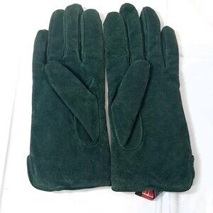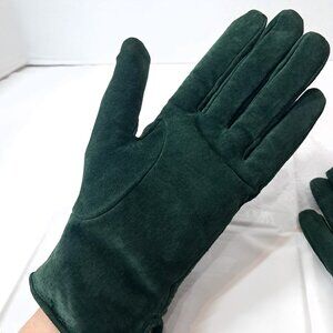 Vintage Isotoner Thinsulate gloves dark hunter green faux suede womens LARGE