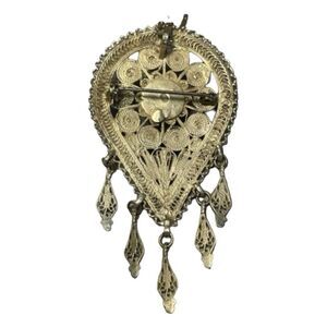 Vintage Israeli 925 Sterling Silver Filigree Statement Necklace with a Bohemian Israeli 925 Filigree Pendant with a center Tigers Eye Gem. The Pendant also can be converted into a Brooch Pin. Purchased in Israel by my Aunt on her many world travels.