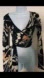 Rare print, vintage Y2K Issa London wrap top/ballet wrap, showcasing a sophisticated wrap style with a tie front and a flattering V-neckline. The black, cream, peach, green color palette enhances its abstract print, while the long sleeves add a touch of refinement.