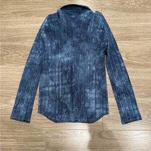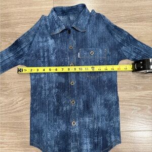 Vintage Issey Miyake denim printed top! Button down with collared top, I believe it is a size 3 based on how people are saying to read the size on the Japanese tag (see pics of tag to confirm), very stretchy and can fit multiple sizes! Great vintage condition, such a cool piece!