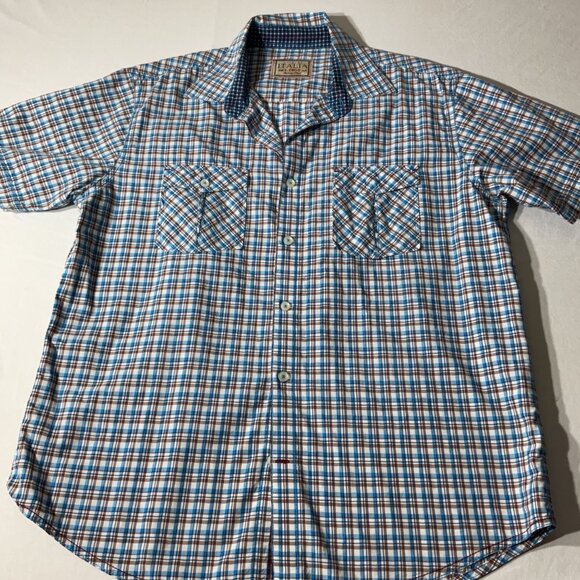 Vintage Italia C.1958 Mens Plaid Size L Sleeve Button-Up Shirt Blue & Brown