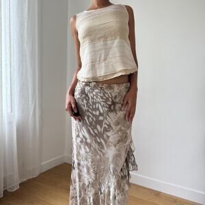 Crisp linen tank in sand + ivory with semi-sheer stripe texture, layered hem, and a clean zip closure. Minimal, airy, and easy to style. Made in Italy.
