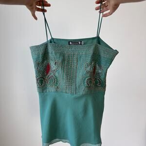 Vintage Italian 100% Silk Embroidered Beaded Cami with Side Zip (M)