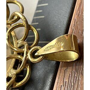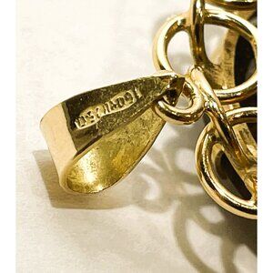 This elegant Italian-made pendant showcases a stunning 19mm smoky quartz, encased in an intricate 18K gold setting. The craftsmanship is evident in the delicate loops that frame the gemstone, providing a sophisticated look. Ideal for those who appreciate refined jewelry with a touch of vintage charm. The weight of the pendant is 10.57 grams on my scale.