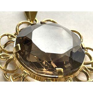 Vintage Italian 18K Gold Pendant With 19mm Smoky Quartz Stone