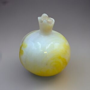 Vintage Italian Alabaster Fruit, Yellow and White Carved Stone - Pomegranate
