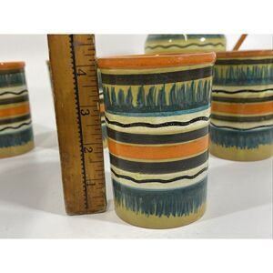 Vintage Italian Art Pottery Midcentury 60s Pitcher Cup Set Striped